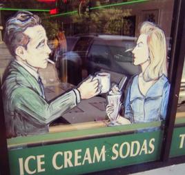 Jim Dandy sipping a Chocolate Ice Cream Soda, served by Row.